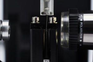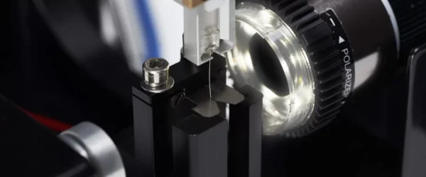 O módulo de Resistência ao Cisalhamento Interfacial (IFSS) é um módulo intercambiável para o Dia-Stron LEX820, usado para medir a força de descolamento de microgotículas em fibras e filamentos individuais. A câmera e a fonte de luz permitem que os usuários visualizem a fibra/gotícula durante o teste e capturem o modo de falha em vídeo e imagens estáticas. O método IFSS pode ser aplicado a vários tipos de fibras e filamentos: vidro, carbono, cerâmica, aramida, basalto ou fibras naturais.